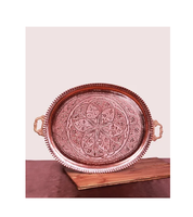 Best Quality Copper Tray Round Desserts Drinks and Home Decorative Tray Copper Tray Hot Sale Handmade Product